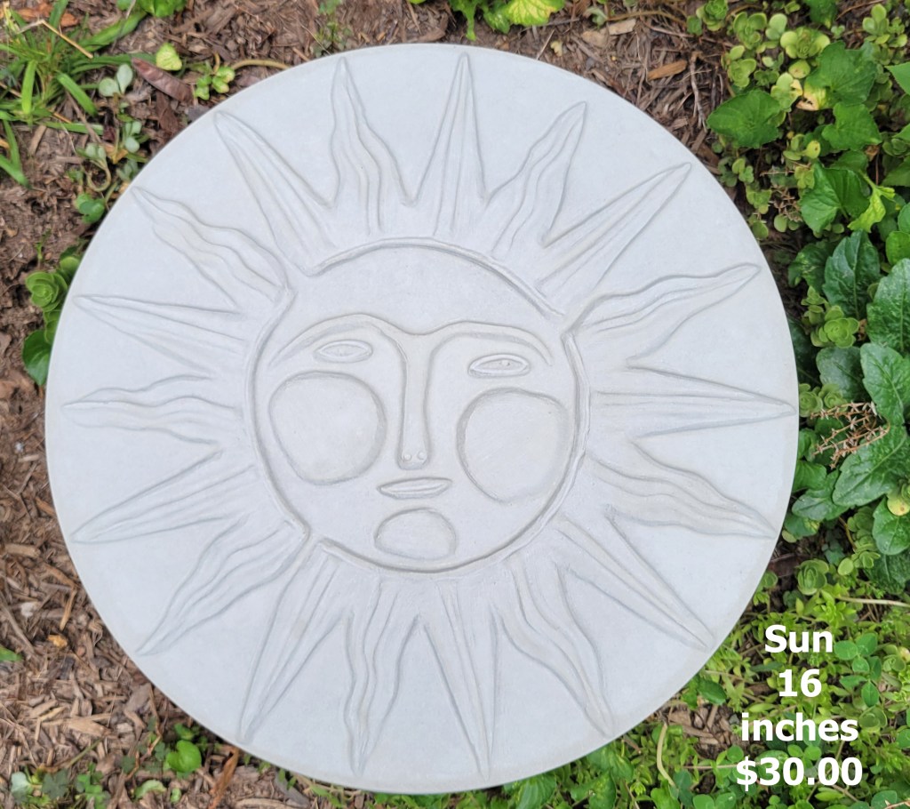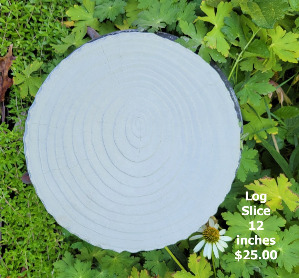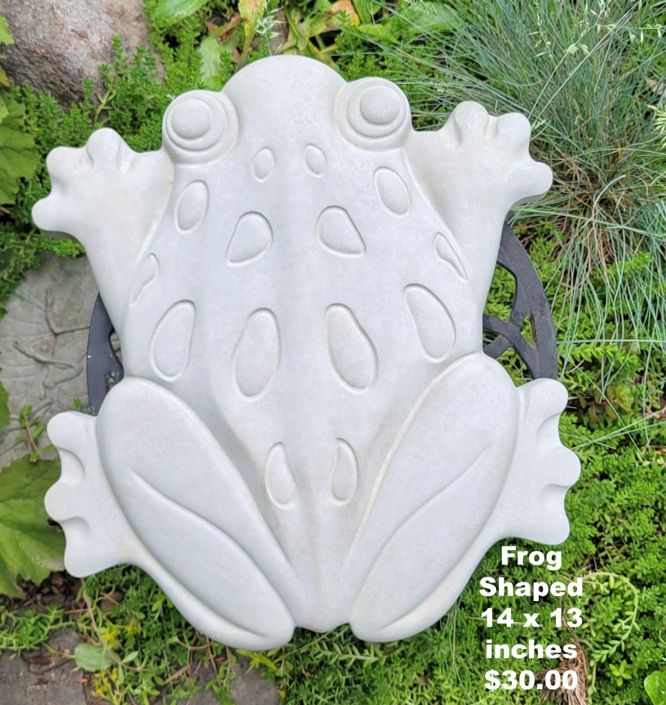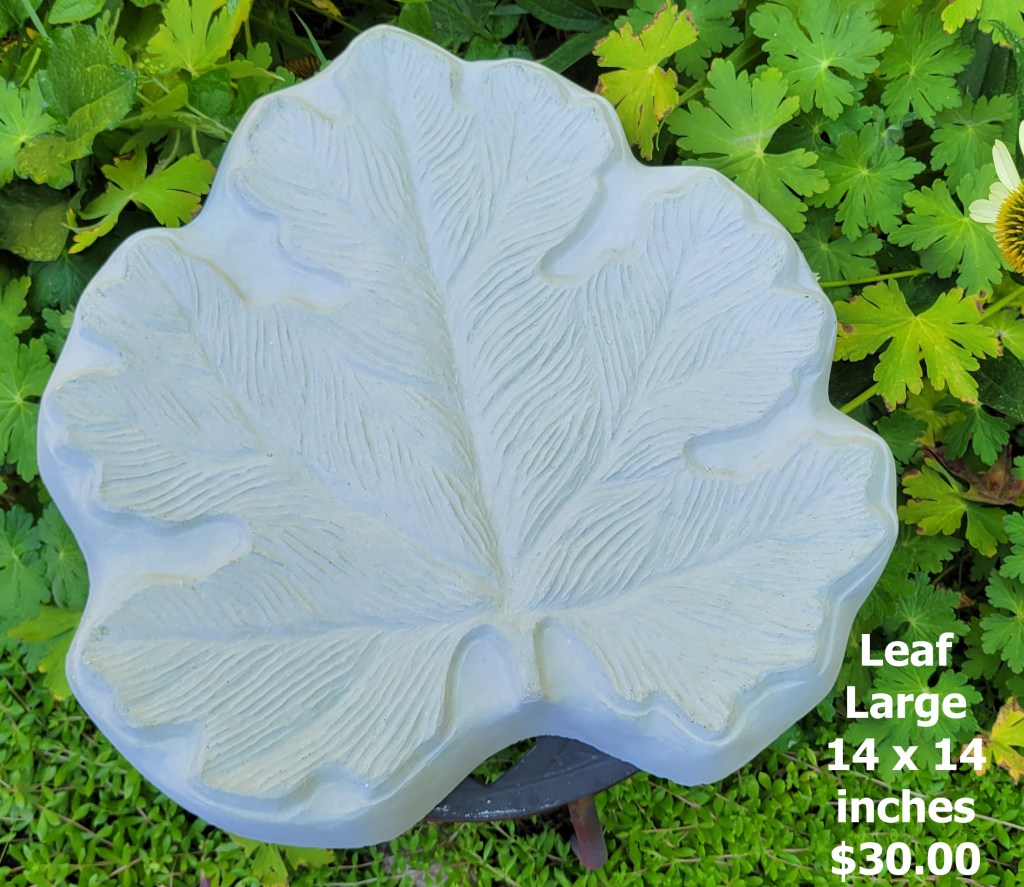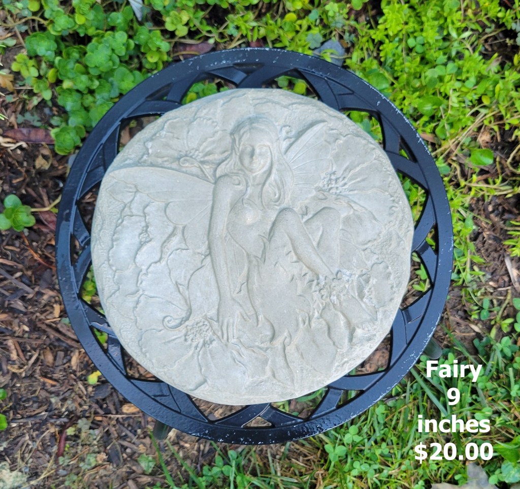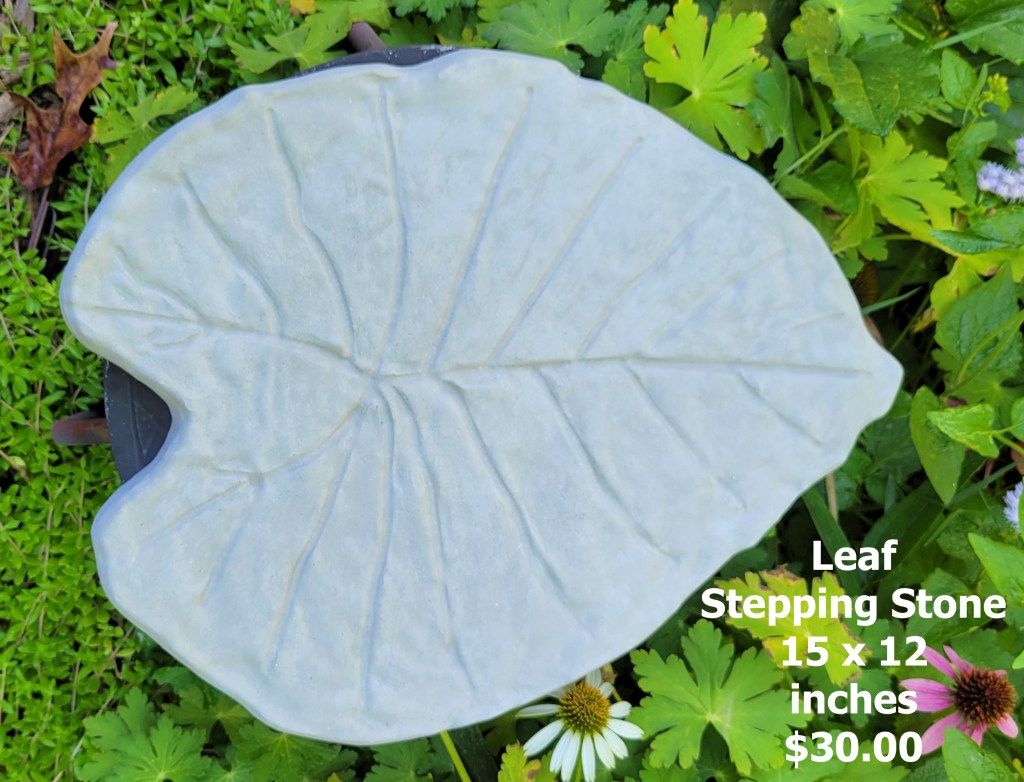 Molded concrete stepping stones. I make a range of sizes and shapes that are suitable for small, medium, and large garden spaces.