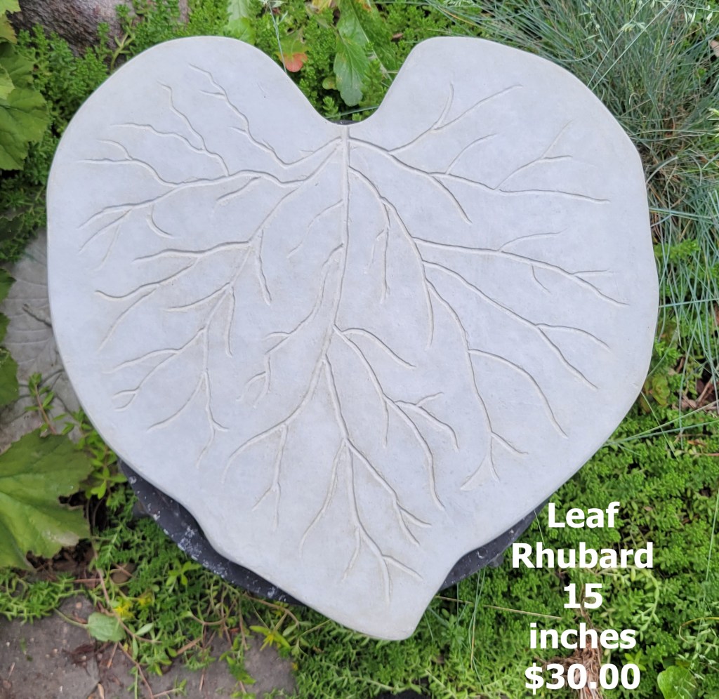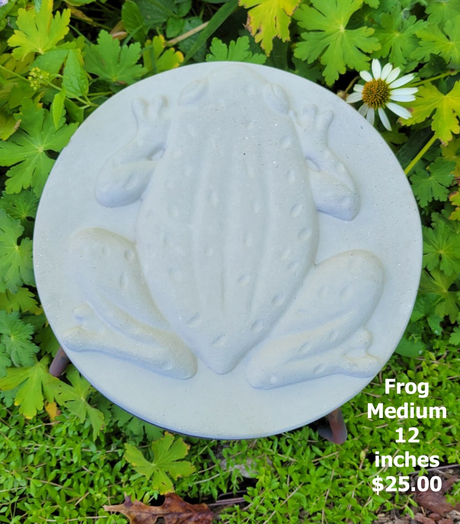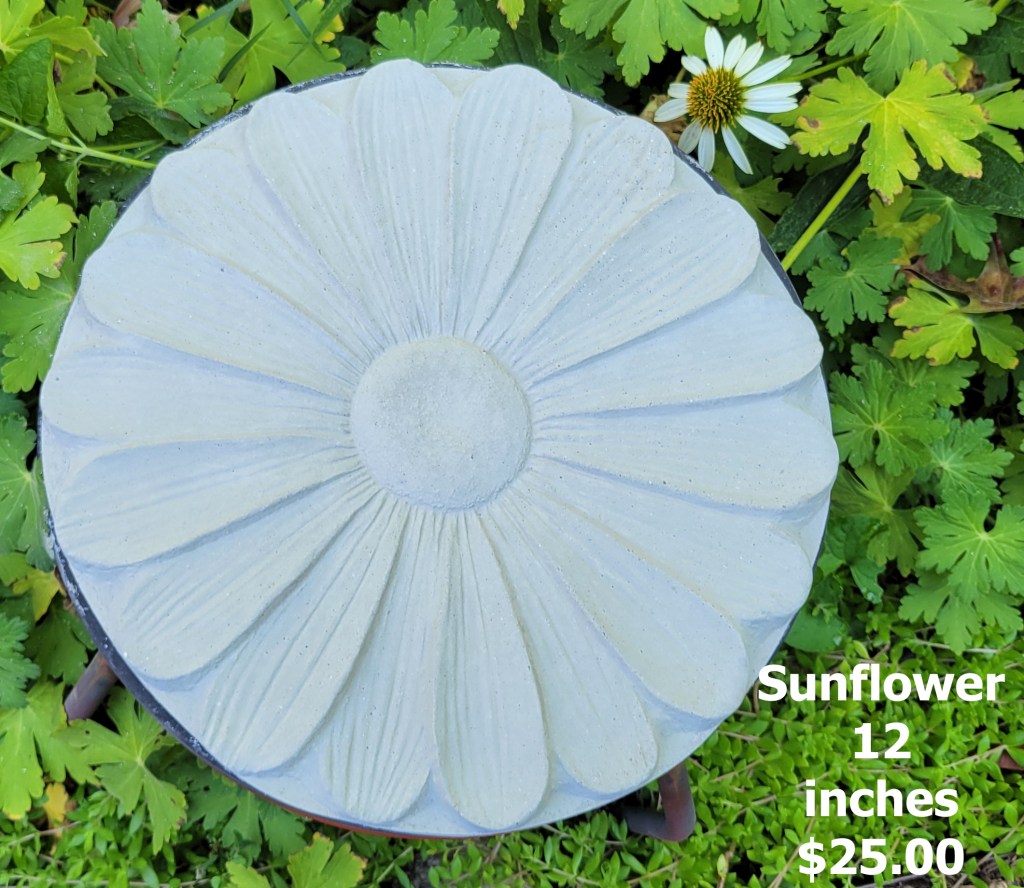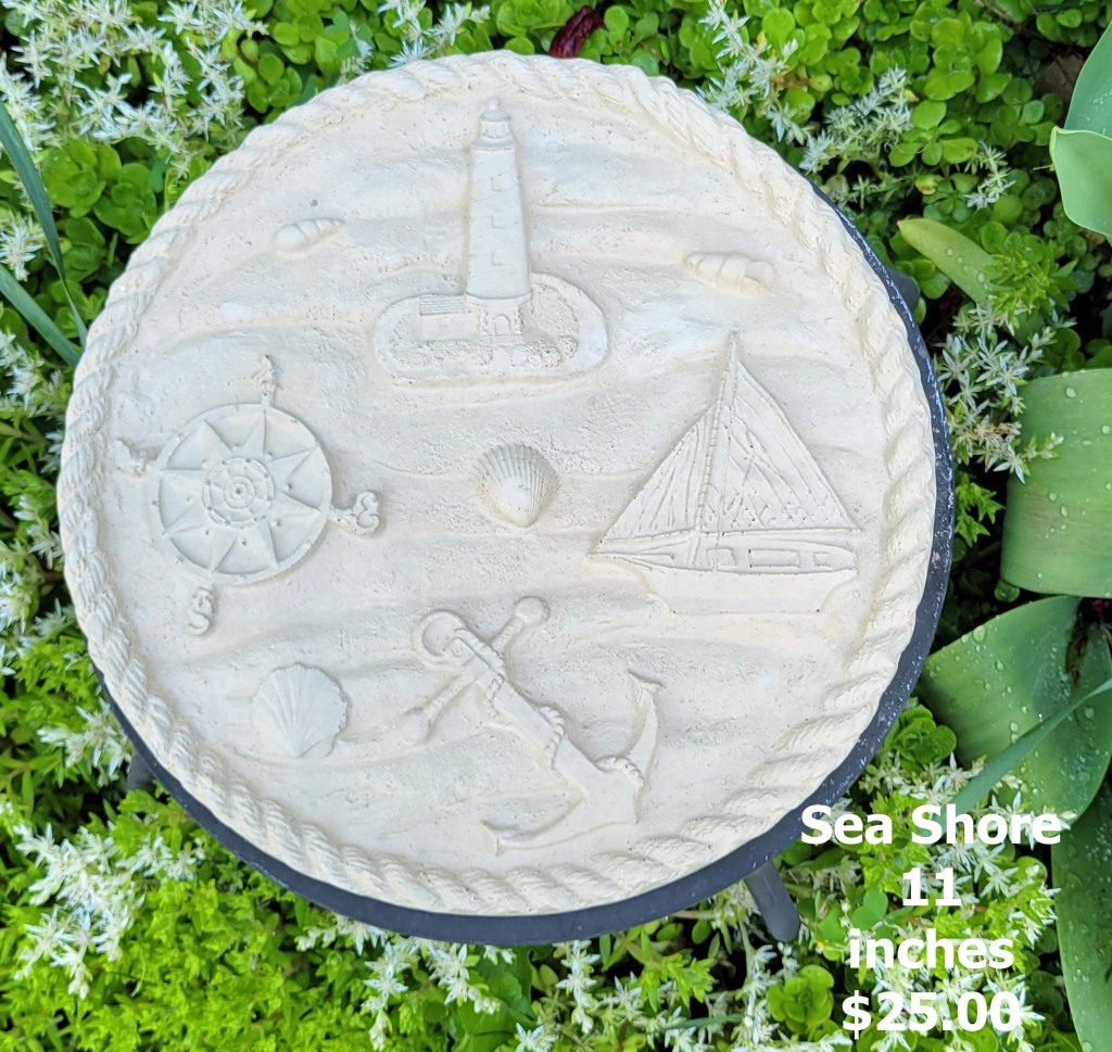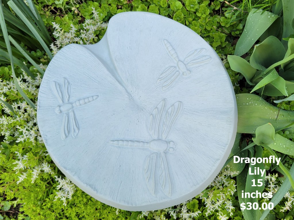 Molded concrete stepping stones. I make a range of sizes and shapes that are suitable for small, medium, and large garden spaces.