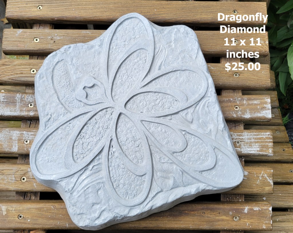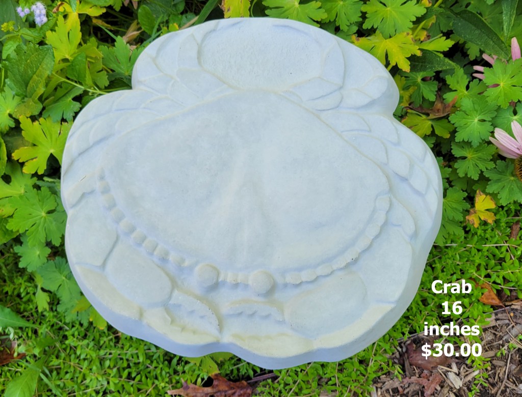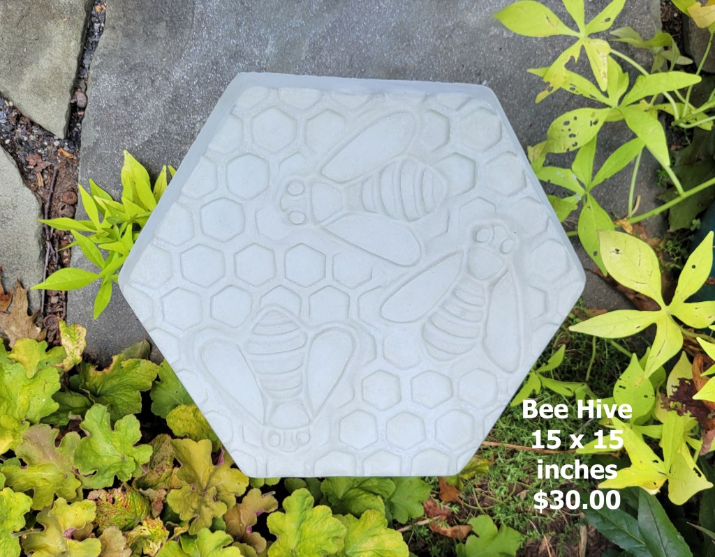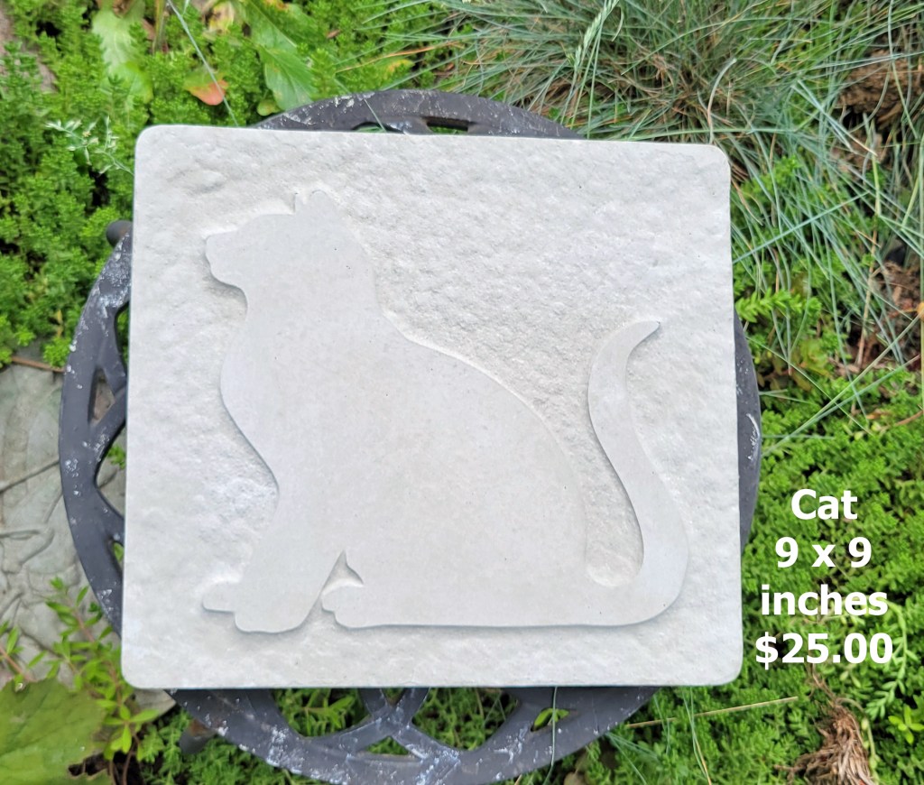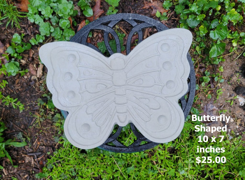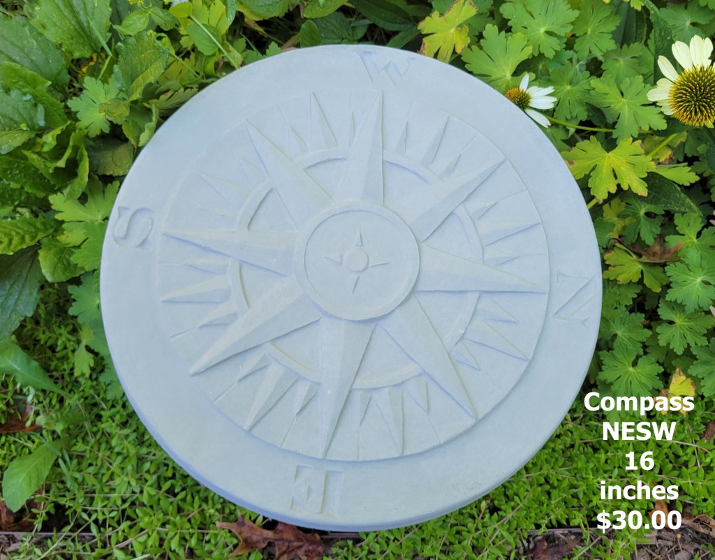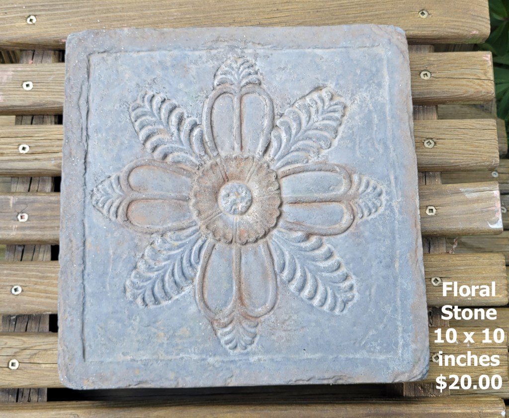 Molded concrete stepping stones. I make a range of sizes and shapes that are suitable for small, medium, and large garden spaces.