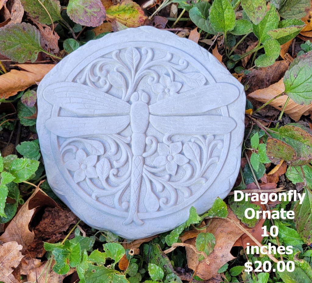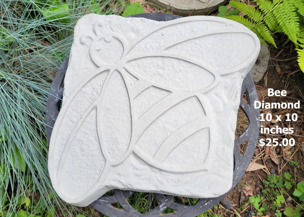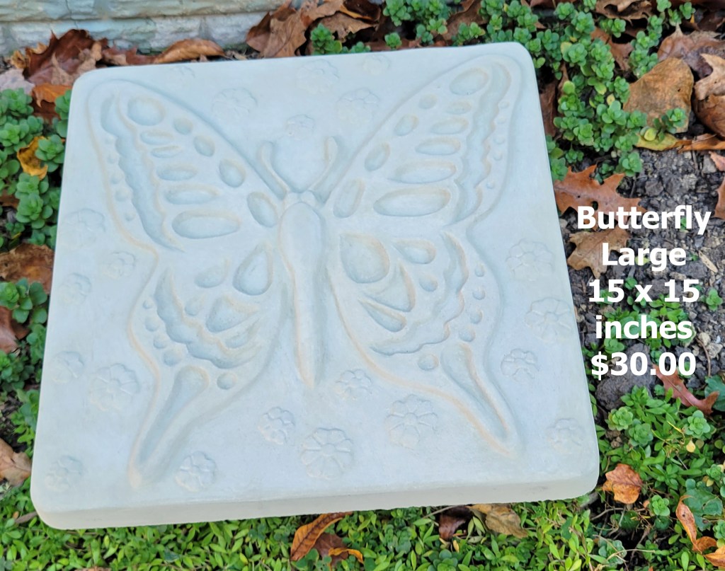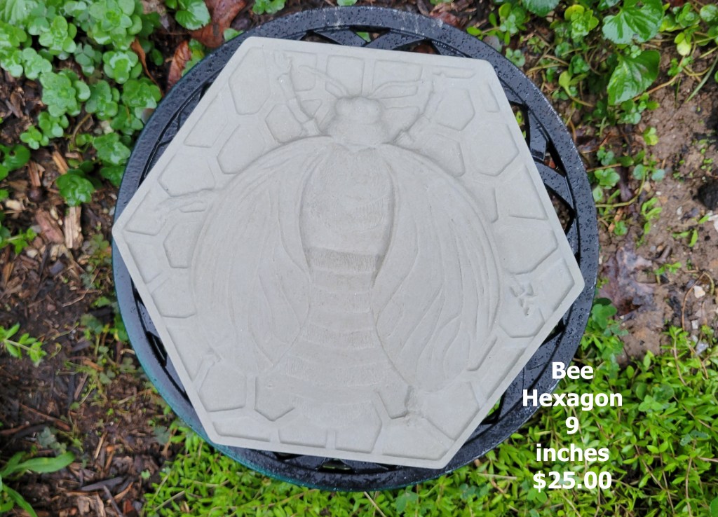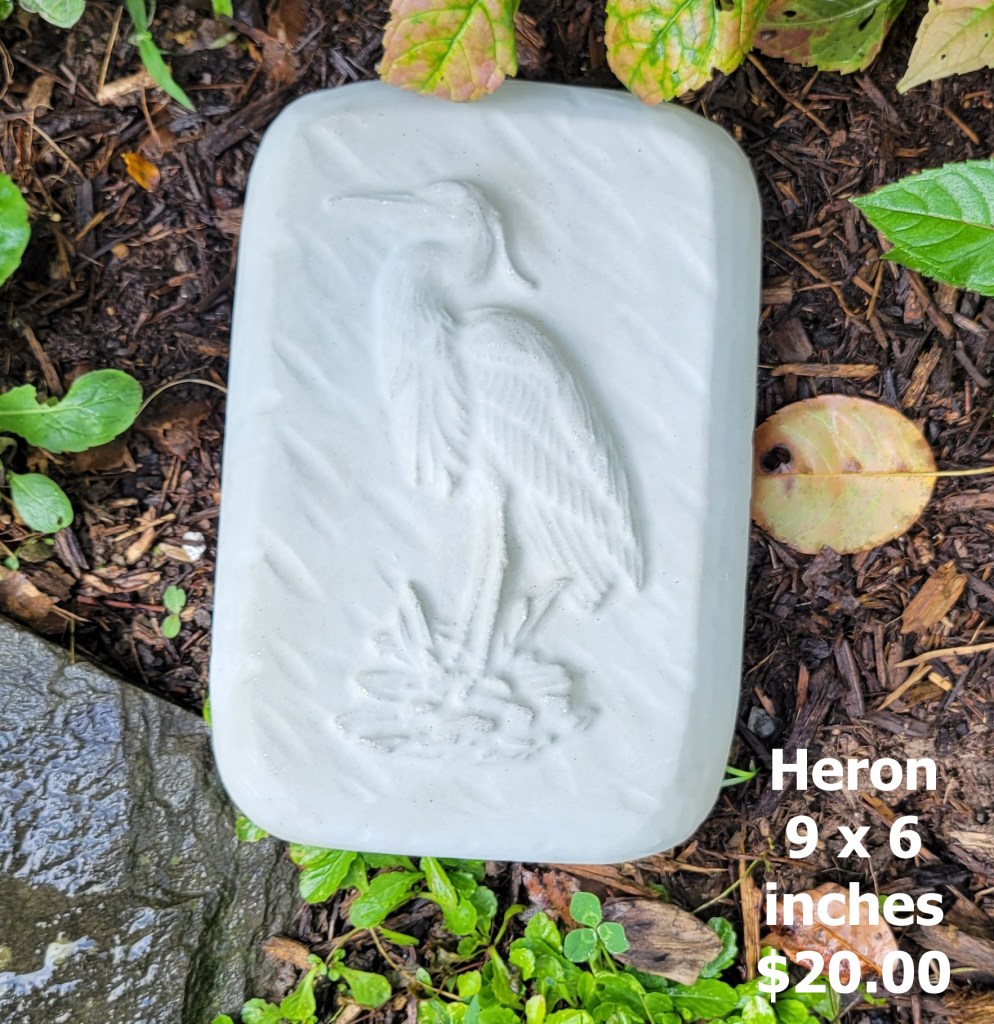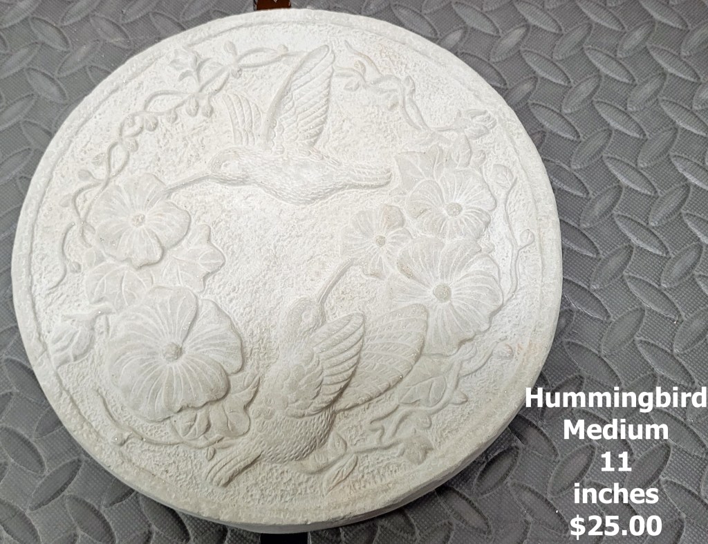 Molded concrete stepping stones. I make a range of sizes and shapes that are suitable for small, medium, and large garden spaces.
