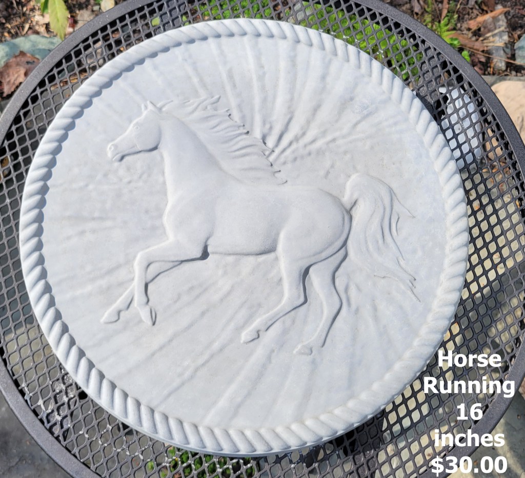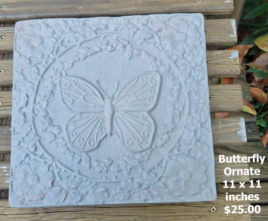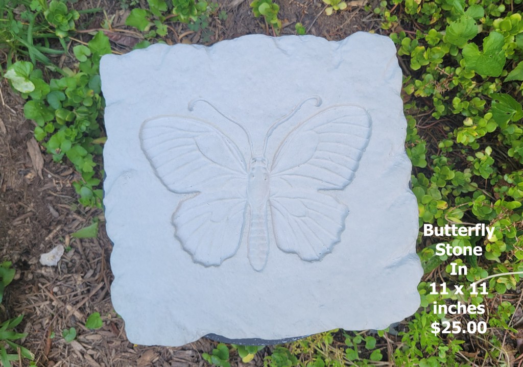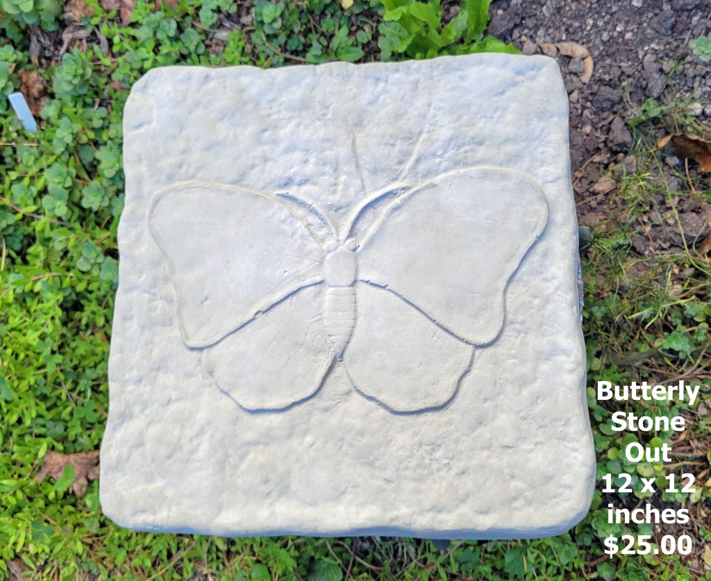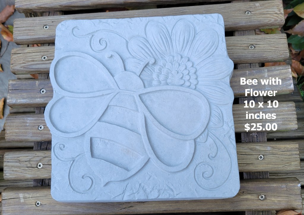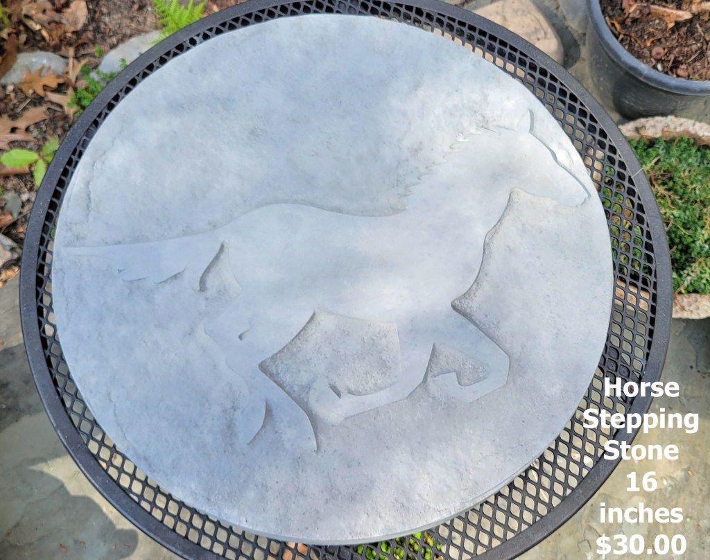 Molded concrete stepping stones. I make a range of sizes and shapes that are suitable for small, medium, and large garden spaces.